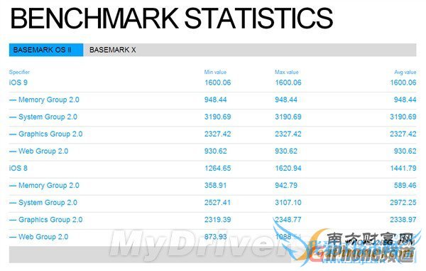 iPhone6搭载iOS9跑分曝光:画美不看 按照苹果的一贯节奏,iOS9系统应该在6月份的WWDC2015上正式亮相。根据最新消息,搭载iOS9系统的iPhone6跑分成绩首次出现在Basemark OSⅡ数据库中。