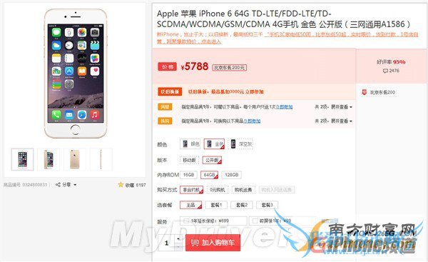 目前在1号店上,金色版iPhone 6的16/64/128GB版售价分别是5188、5788以及6288元,分别比官网便宜了100/300/600元,这个优惠幅度相当给力。