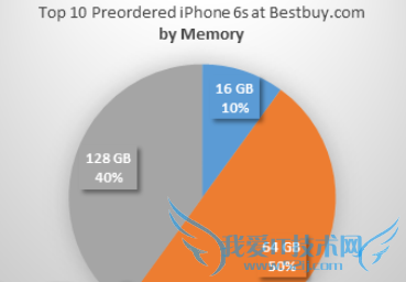 此外,从统计中可以看出,新一代iPhone购买64GB的占比达到了50%,其次是128GB,占比有40%,而16GB只有可怜的10%。PS:国人买iPhone 6S Plus、玫瑰金、16GB的会更多,不是吗?