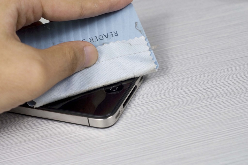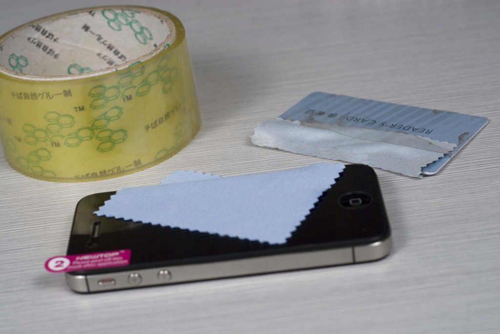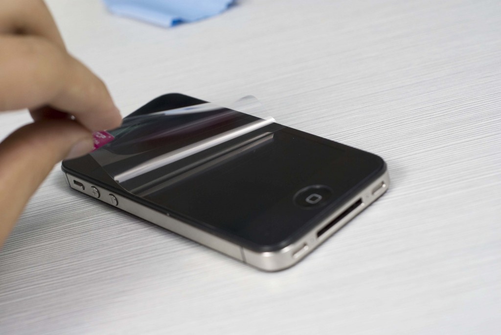 首先使用贴膜中附带的无尘布(有眼睛布或者专用屏幕擦拭布最好不过了)清理好屏幕上面的灰尘、油渍等等脏东西,记得也要在一个尽量少灰尘的环境下进 行贴膜。然后用车卡在贴膜时候慢慢的一点点挤压出可能存在的气泡,在这里教大家一个好方法,把贴膜中的附带的无尘布包在卡片上再来挤压贴膜时候屏幕上的气 泡最好用了,利用布的柔韧性去增加更大的接触面积去跟好的挤出气泡,并且这样也不会对手机对膜造成伤害。