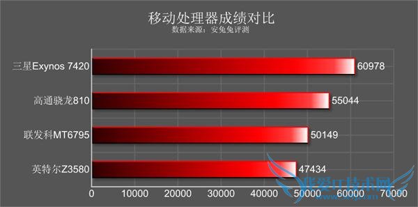 关于魅族 MX5 搭载的 MT6795T 处理器,此前安兔兔给出了该款处理器和高通骁龙 810 处理器的跑分对比: