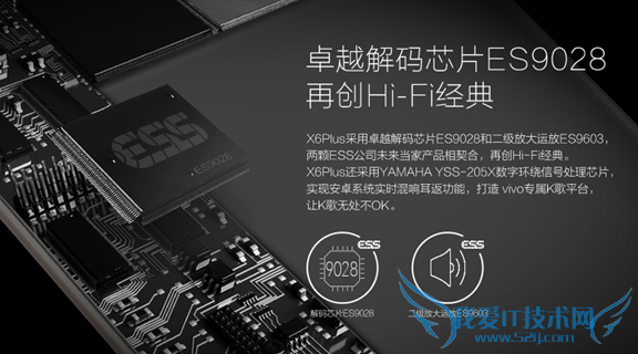 ES9028 DAC作为ES9018的接班人,其理论最高信噪比高达129dB,总失真低于-120dB,最高支持到32bit/384khz采样,并支持更多的高清音频格式解码。配合单颗运放中电子参数性能最强、并整合了Hi-Fi 2.0中两级运放、专门为ES9028匹配定制的ES9603,使vivo X6Plus在电子方案和声音调试完美衔接。