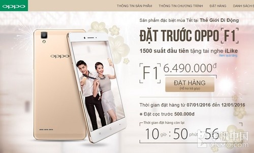 手机中国消息,近日,OPPO旗下全新F系列首款机型OPPO F1在越南开始接受预订,将于1月21日发货。