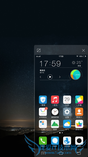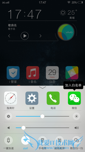 Funtouch OS 2.5.1 的交互逻辑并不复杂,上手成本不高。和原生系统不同,vivo 以图标形式将多任务后台集成到上拉菜单中,同时还提供了原本位于下拉菜单中的快捷开关。另一方面,单击菜单键则可以呼出桌面自定义菜单,可以自由添加桌面挂件、改变划屏特效以及隐藏桌面图标。