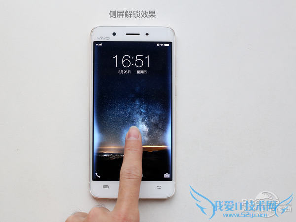 针对双侧曲面屏,vivo Xplay5的系统也适配了相应的功能。如侧屏解锁功能,当在锁屏界面滑动解锁时,手机的双侧曲面屏会有相当的光晕效果。