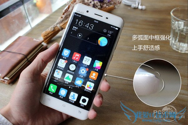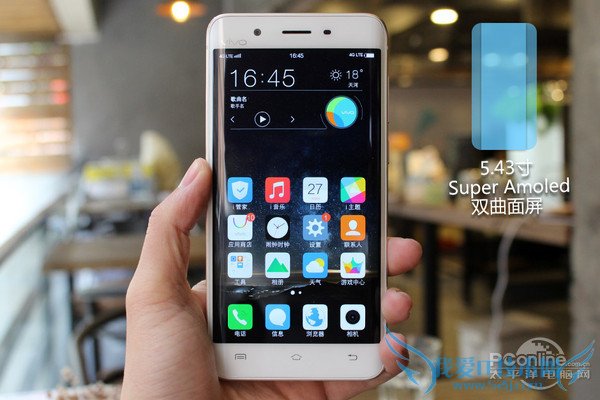 由于采用了双侧曲面屏的设计,所以Xplay5的左右边框会显特别窄。值得肯定的是,握持Xplay5的时候,并没有特别硌手的感觉。这可能主要得益于多弧面中框的设计。