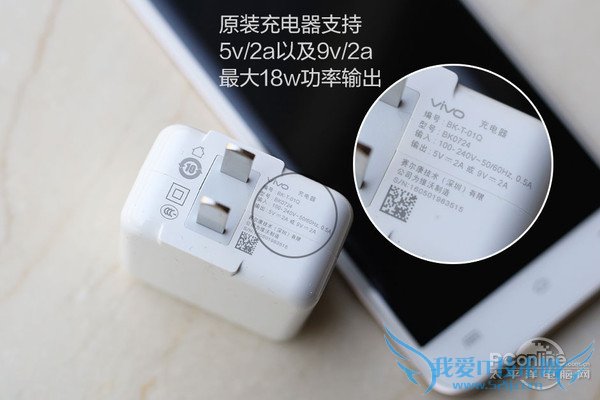 与vivo X6/X6 Plus一样,Xplay5同样支持双擎闪充功能,所谓的双擎闪充,其实就是内置了双充电芯片以及双充电电路(估计就是高通PM8994+SMB1357两个芯片和其对应的电路),配以电流耐受值更高的电池,带来更快以及更稳定的充电体验。而充电方案则来自高通的QC方案,具体版本尚不明确,但原装的充电头最大支持9v/2a的输出规格。