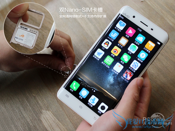 按键方面,Xplay5的电源键和音量键都设置在机身右侧偏上方,而卡槽设计在机身左侧边框的下方。Xplay采用了双Nano SIM卡的设计,两卡槽均支持全网通网络制式,而且也支持4G+网络。
