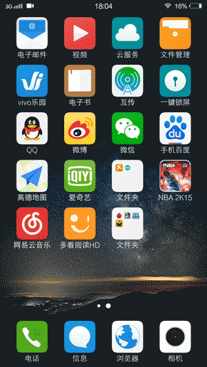 vivo Xplay5搭载的是基于安卓5.1系统深度订制的Funtouch OS 2.5,UI界面采用了时下流行的扁平化设计,统一的圆角矩形图标样式配合上简单的配色显得清新明晰,同时还重绘了部分应用图标,使得整体界面看起来很整洁。