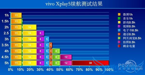 vivo Xplay5在完成测试后仅剩38%的电量,续航成绩可以说比较优秀。此外,Xplay5还支持双引擎闪充功能,配合系统内置的多种省电模式,续航得以保证。这不仅因为3600mAh的大电池,更少不了诸如同步心跳、电量护卫等系统层面的优化。
