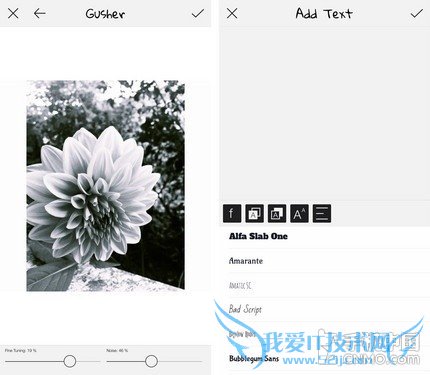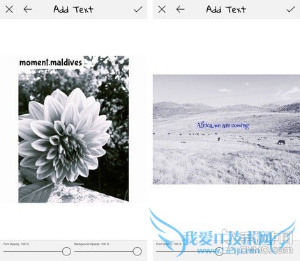 《B&W FX》支持为图片加上想要的文字,用户可选择不同的字体和颜色,种类还算是丰富,可遗憾的是目前还仅提供英文。既然是朋友圈杯摄影大赛,逼格一定要有,文字最好是"New York we are coming"或者是“迪拜的帆船酒店也就那么回事”,如果是晒美食,一定别忘了点一盘大虾,这可是大家公认的炫富新方式。