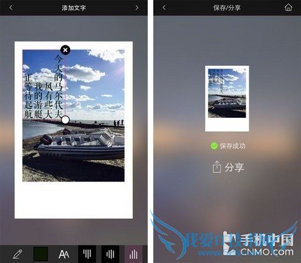 在相册中选定一张参赛作品,应用提供了几款边框,多数更偏向文艺风格,就算是普通的照片经过这么一修饰,留白的部分正好可以加上文字。只不过边框的样式并不太多,只能满足一般需求。