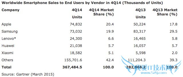 欢迎您访问52ij手机之家,今天小编为你分享的是手机资讯:Gartner:苹果超三星成第四季全球最大智能机厂商,让你在第一时间了解手机的最新动态,下面是详细的分享!