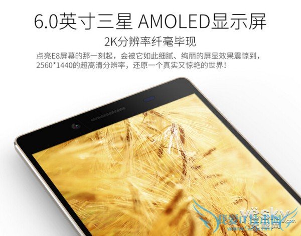 金立E8采用航空铝合金机身,机身背面为贴合手心的曲面设计,配备高精度的按压式指纹识别系统。拥有6英寸2K分辨率的三星AMOLED屏幕,搭载MTK helio X10八核64位架构2.0GHz处理器,3GB RAM+64GB ROM。