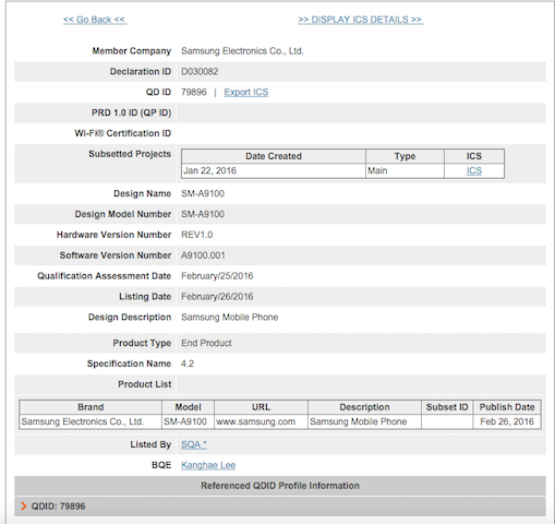三星已经开始研发Galaxy A9 Pro(SM-A9100)智能手机。现在看来,该公司正在加速Galaxy A9 Pro研发过程,希望它可以早日上市。我们发现,Galaxy A9 Pro已经出现在蓝牙SIG网站上,显示它已经通过蓝牙技术联盟相关认证,这无疑表明A9 Pro将很快上市销售。