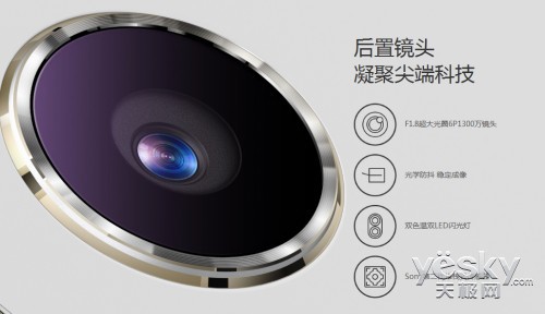 vivo Xshot在主打的拍照功能上,拥有6P镜片的1300万像素SONY第二代堆栈式传感器IMX214后置摄像头和800万像素84度广角前置摄像头,并在全球首次采用了F1.8超大光圈配合OIS光学防抖的超强组合。实现了在全球千万级像素手机中首次搭载双色温双LED闪光灯、全光谱LED补光灯和设置了独立的两段式拍照按键,功能也拥有极速盲拍、运动预拍、智能夜景、背景虚化模式、儿童模式、AR实时美妆、4K视频摄录、摄像手/自动对焦切换、AE锁定、快/慢镜头等等。