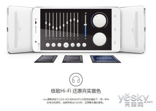 vivo Xshot拥有全新定制的CS4398解码芯片+ TLV320ADC+AB类耳放MAX97220芯片的完全独立的高级Hi-Fi通道。