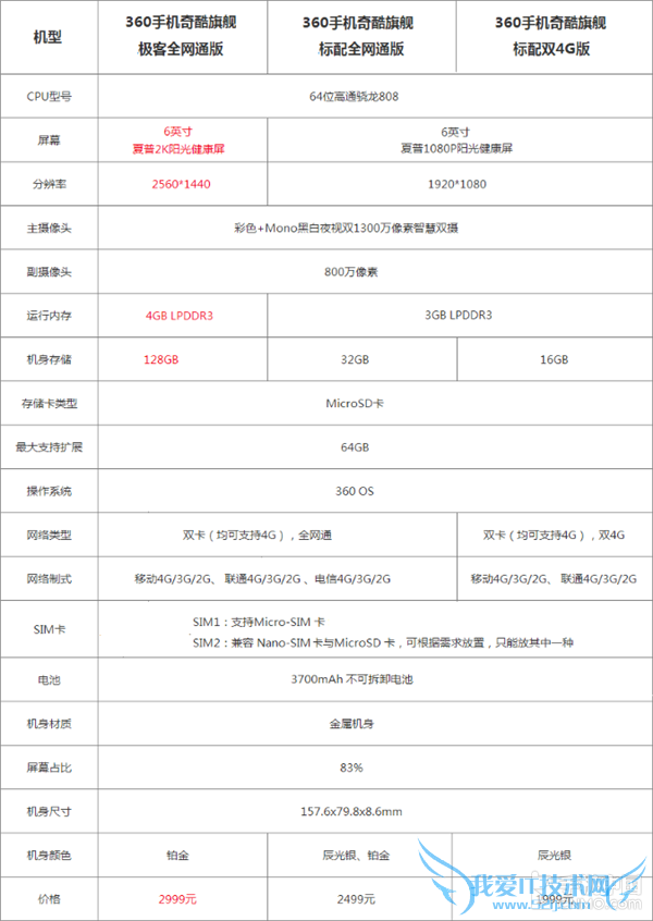 众所周知,360奇酷手机有很多版本,青春版、旗舰版、极客版,而不同版本内部又跟据网络制式的不同细分出更多的版本,下面我们来对比一下三款360奇酷手机旗舰版的配置,看看哪些消费者更适合新推出的这款极客版。
