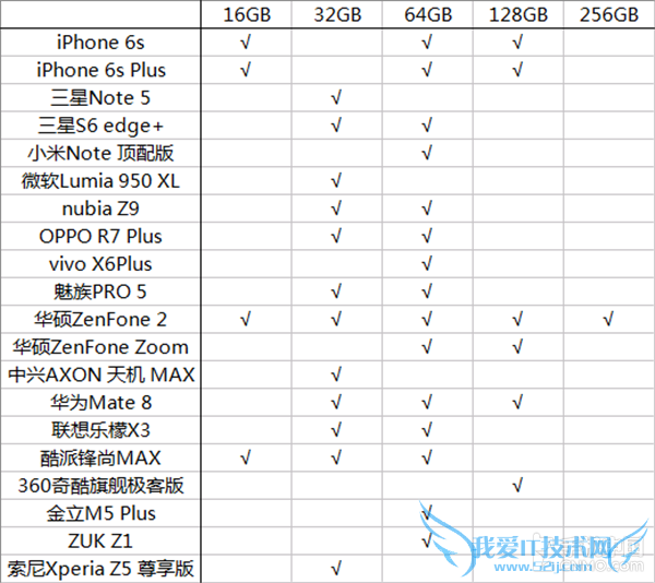 热门旗舰机ROM容量对比
