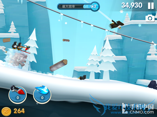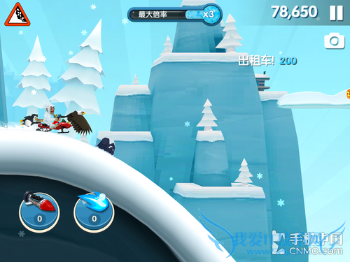 当然你可以通过狂按屏幕来达到迅速起身的效果,不过这招对于游戏后期来说然并卵,那时一旦倒地就会立即被大雪吞噬。所以保证不摔倒才是必要的,这时你可以寻求小伙伴们的帮助,比如搭上企鹅或坐着浴缸前行时,撞上障碍物就会抵消倒地的效果,不过它们也会如同一次性道具那样被消耗掉。