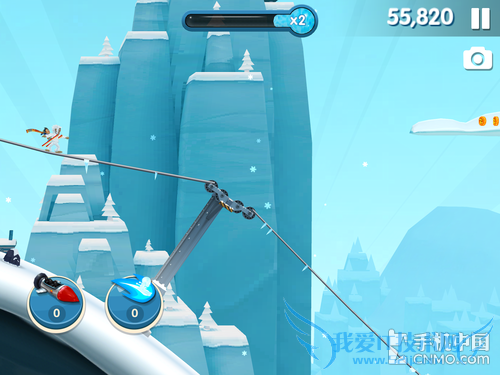 这些新老朋友的加盟不单为孤寂的冰雪世界增添了些许活力,他们个个也都身怀绝技,“小摔哥”想要滑的远还全得仰仗他们。在滑行途中你会遭遇大量的障碍物,最常见的就要数散落的岩石了。如果撞上他们你就会直接来个倒栽葱,如果不及时站起身来,后方的雪崩就会猛然把你吞噬,小命呜呼了。