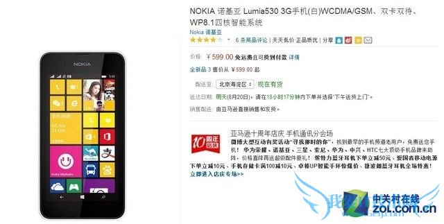 诺基亚530是一款非常实惠的Windows phone 8.1四核智能手机。该机是上一代Lumia 520的升级版。配备四核处理器和最新的Windows Phone 8.1系统,是一款不错的WP入门机。今日该机正在亚马逊网上商城进行促销,感兴趣的朋友们不妨去看一看。