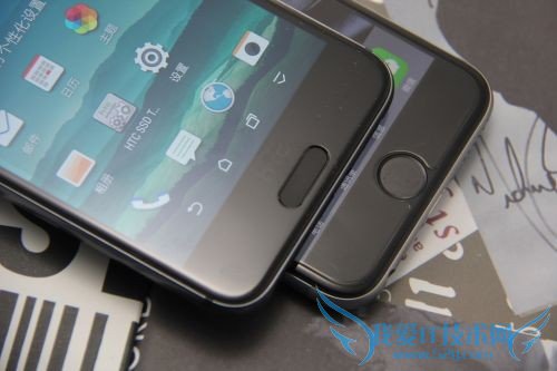 机身正面,两款机型还是能看出明显的区别的,最大的不同就在于Home键的造型了。加入了指纹识别模块的Home键,最大的好处莫过于让HTC One A9不在饱受多下巴的困扰,圆角矩形的造型也凸显精致。