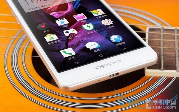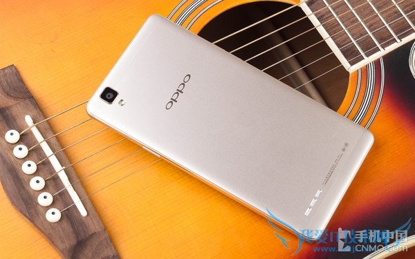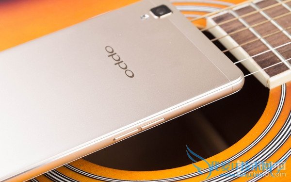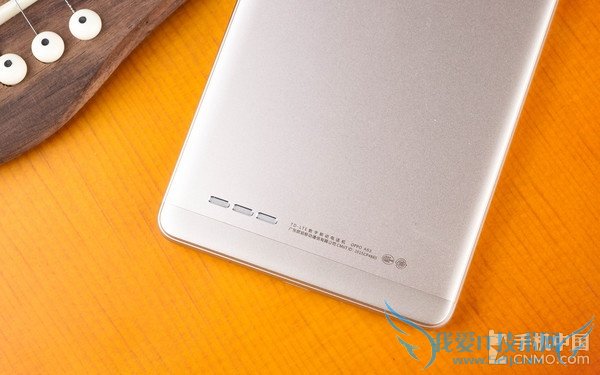 背面左下方设计有五磁路扬声器,拥有1CC的大音腔,外放效果比较洪亮,开孔也没有毛刺现象,OPPO对于细节的把控值得点赞。只是相较于R7s将扬声器设计在机身侧面底部来说,后置设计可能在声音传播上稍弱一些。