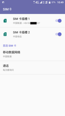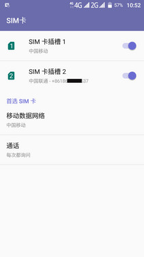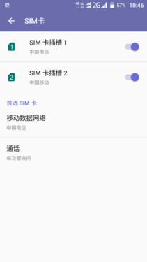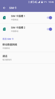 最后,我们把移动号放到卡1,联通号放到卡2,通过数据切换可以看到,当把默认数据连接设置为卡1时,卡2自动降至2G网络,反之亦然。