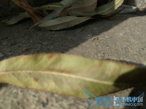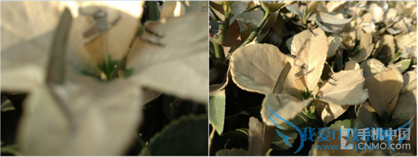 接着小编自近至远地将摄像头往后移,最终印证了这一猜想。随着对焦距离的增大,同一场景下,同一对焦点的树叶终于从模糊变成清晰,证明了Moto X 极微距能力并没有问题,只是最近对焦距离出现了瓶颈而已。