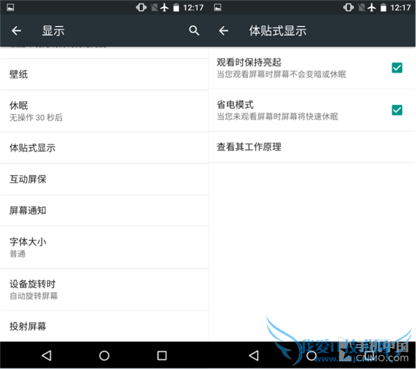 Moto显示:无须唤醒屏幕或解锁手机,即可查看时间或最新消息。相比Moto X Style使用LCD屏幕,Moto X 极重新回归到AMOLED屏幕,让屏幕概览的效果更加好,省电的同时,在概览界面显示的白色文字区域亮度更加亮,主要是背景几乎纯黑衬托出白字更加白。另一方面,屏幕休眠时间小编只设置成30s,但是只要一直盯着屏幕看,例如看电子书或者浏览网页,屏幕是不会息屏的。