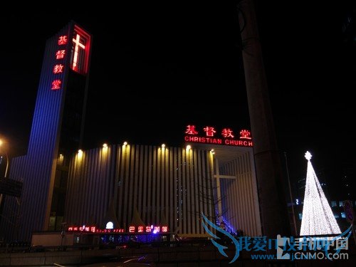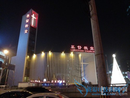 如果把右边过曝的圣诞树遮挡住的话,样张整体观感很好。其实小编是故意把它放进去取景框的,依然还是想测试一下Moto X 极对光线的控制能力,离iPhone虽然有一定程度,但是教堂外墙的栏杆,灯牌的轮廓,天桥的纹理,左侧告示牌的字体全部都真实地还原下来。其实现场的环境是这样的: