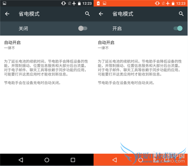 多任务界面不再是2D左右滑动或者上下滑动设计,变成了3D上下滑动设计,也就是俗称卡片重叠式设计。输入法方面,默认的谷歌拼音输入法无论是全键盘还是9宫格样式,键盘间字符全部都去除了分割线。省电模式,开启后上方状态栏和下方虚拟键栏会变成橙色,同时,通知栏也会出现信息提醒用户已经进入省电模式。虚拟键,形状变成最简单的三角形、圆形和矩形。