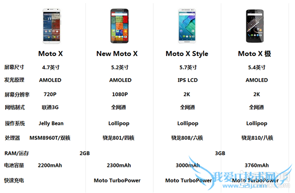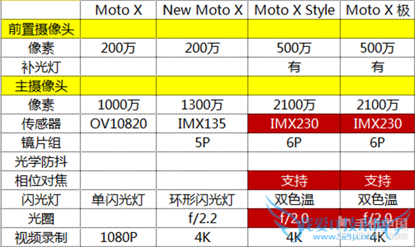 参数对比环节我们选取了Moto X、New Moto X、Moto X Style、Moto X 极四款旗舰机进行对比,看看Moto这几年在成像领域的投入变化有多大?