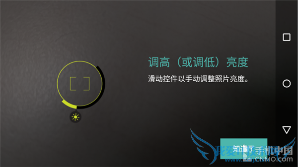 (6)“控制对焦和曝光”的功能类似小米手机,点击屏幕中的黄色圆环,顺时针和逆时针旋转即可降低和提高照片曝光补偿,对于光线十分敏感的场景,这种操作十分有效。