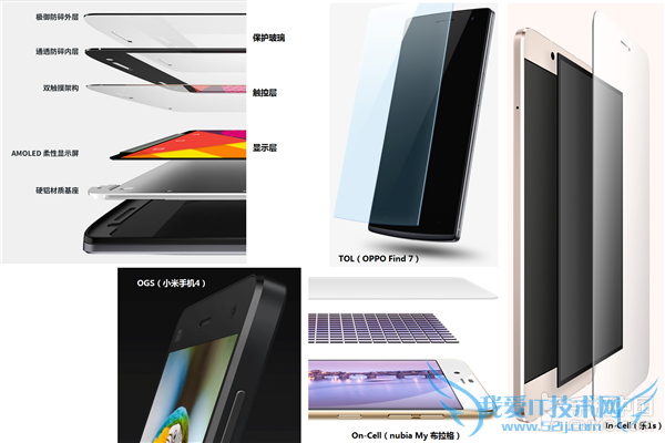 触控层和显示层方面,经常混淆的知识就是全贴合技术:OGS、TOL、In-Cell和On-Cell,目的其实都是为了减薄机身厚度,另一方面就是提高屏幕显示的通透性,再者就是让触控变得更加灵敏。