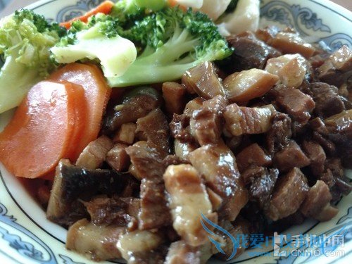 验毒的环节,小编选择了一碗卤肉饭,对焦点落在卤肉上,蔬菜区域因为F2.0光圈出现了虚化现象,卤肉则肥美可口,但是没有过分渲染色彩,忠于iPhone那种自然还原。注意,这碗饭是有层次感的,前面是卤肉,后面是蔬菜,卤肉之间也有前后之分,所以整个画面并不是2D平面记录,而是3D立体还原。