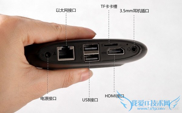 Remix mini背面则是一圈脚垫,用来防滑减震,效果不错。机身前部有一个亮度不高的LED指示灯,背部则集成了所有的接口,从左到右依次是电源接口、以太网接口、两个USB2.0接口、TF卡槽、HDMI接口、麦克风和3.5mm耳机接口。