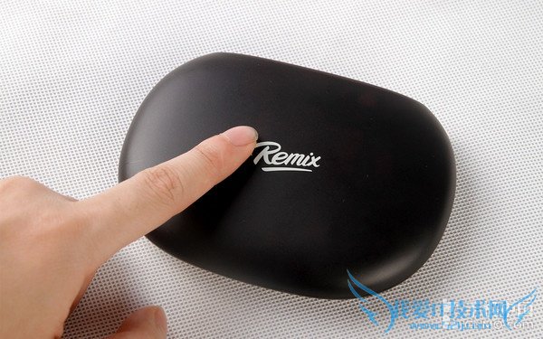 技德Remix mini的机身整体都为磨砂质感的塑料材质,仅有Remix的LOGO放置在顶部,非常简洁,放在桌面上能凸显出几分精致感;另外,机身上没有任何开关,而是在LOGO出设置一个隐藏式的电容开关,一触即可开机关机,不过隐藏式的开关同样也有烦恼,拿起来的时候就会不小心触碰到,使用起来不太顺手。