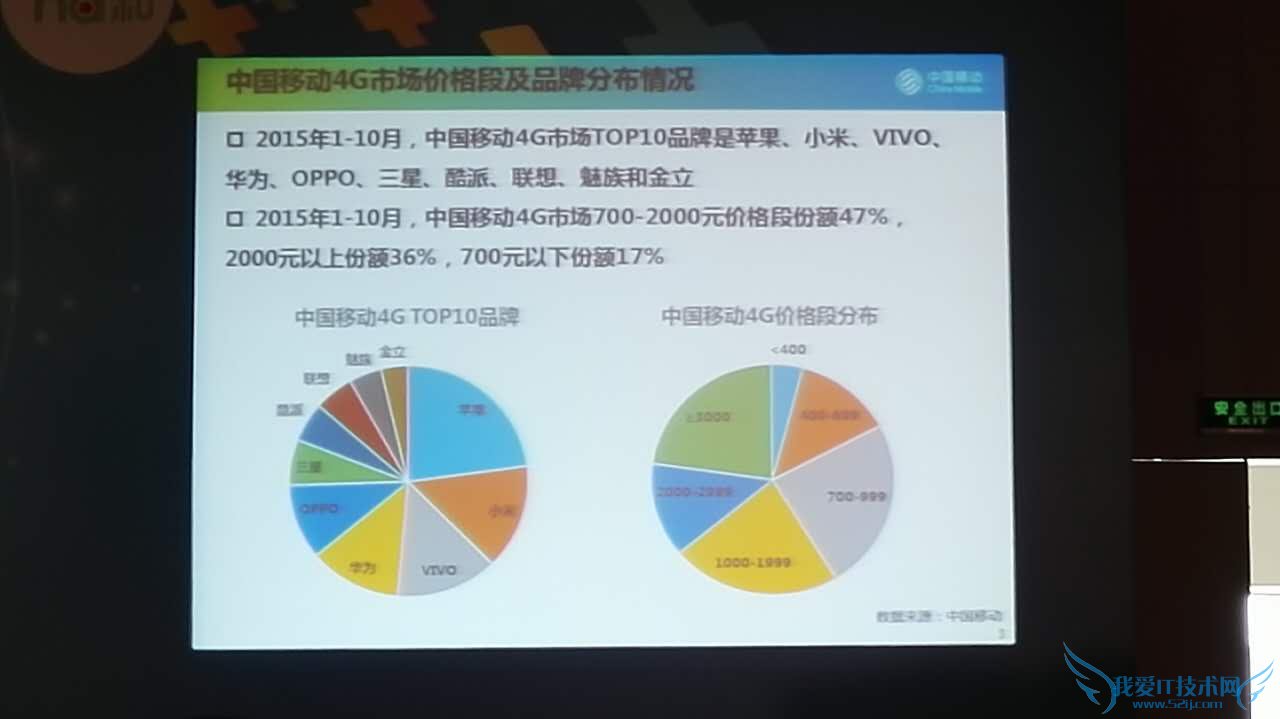 在近日召开的“2015年中国移动全球合作伙伴大会”的相关终端分论坛上,中国移动终端公司副总经理马景新公布了今年1-10月,中国移动4G市场Top10排名,分别是苹果、小米、vivo、华为、OPPO、三星、酷派、联想、魅族和金立。