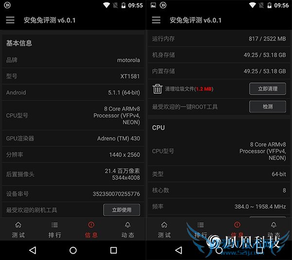 性能方面,Moto X 极作为旗舰采用了高通骁龙810八核处理器,采用了64位架构,可能是因为发热方面的原因,Moto X 极上的这颗骁龙810的主频为2.0GHz,在GPU方面,骁龙810集成了Adreno430图形处理器,其主频为630MHz,配合3GB RAM,Moto X 极的性能确实达到了目前的旗舰级别。