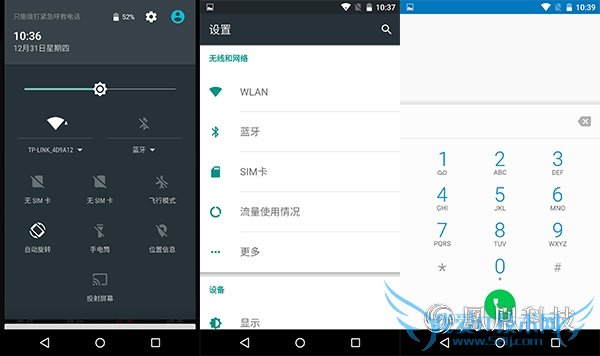 因为几乎采用了原生Android系统,所以说在界面上确实没什么太多可介绍的,通知栏、快速设置、多任务后台、通话界面、设置界面等等都是原生的风格。从home键向上滑动也改成了灵犀语音的搜索,支持语音打开一些应用或者是搜索等功能,体验上中规中矩。