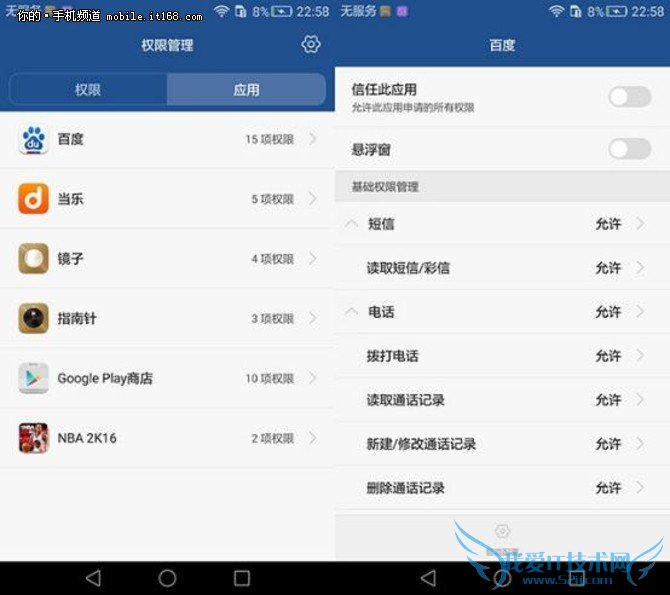 以最常见的应用权限管理为例,目前包括EMUI在内的深度定制系统都已经提供了比较完善的权限管理功能,然而一直到Android 6.0上,这类安全功能才算正式被加入到Android的最底层当中,成为原生功能。依托于系统最底层的支持,EMUI4.0的权限管理模块也更加完善,能够对应用权限进行更有效的管理,为整个系统的安全性起到更好的保驾护航作用。