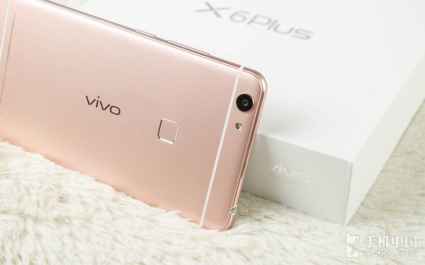 另外,就vivo X6Plus的背部设计来说,与苹果iPhone 6s相似,拥有两条“信号带”。不过,它的纳米注塑信号带宽度仅为1.5毫米,视觉上更窄一些,也更具美感。此外,vivo X6Plus背部同样加入了按压式指纹识别模块,如下图所示,支持指纹解锁、解密隐私空间等功能,响应灵敏,体验与vivo X6一样,令人满意。