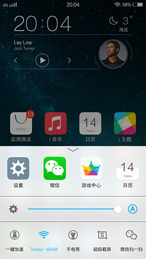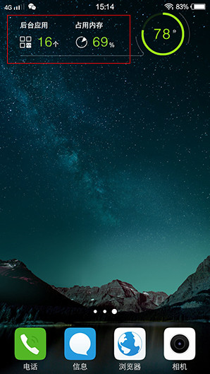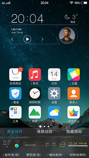 vivo X6Plus(双4G版)的桌面属于时下常见的一体化设计,使得操控体验更加便捷,图标则为圆角矩形,视觉层面颇为舒适,支持桌面文件夹管理以及快速卸载等常见功能,进一步减少了用户的学习成本。事实上,除了传统的小挂件(小部件)之外,它新增了i挂件、便签、一键加速、i音乐等众多特色小挂件,带来了更多便捷体验,尤其是“一键加速”小挂件。
