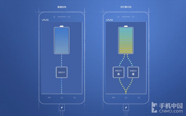 当然就日常使用而言,手机电池容量再大也有耗尽之时。与vivo X6一样,这款手机也支持双引擎闪充,拥有双充电芯片和双充电电路,能够为用户带来两倍于普通手机的充电速度,可以让手机快速“回血”。经过笔者实测,采用非原装充电器充电20分钟,vivo X6Plus(双4G版)的电量依然能够从64%增至84%,充电速度同样较快。