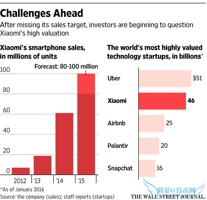 科技讯 北京时间1月11日消息,《华尔街日报》网络版发表文章称,去年初,小米还是全球估值最高的科技创业公司,占据中国智能机市场的头把交椅。经过一年的发展后,小米的智能机年销量未达预期,460亿美元高估值受到了投资者的质疑,中国第一大智能机制造商的地位被华为夺走。文章指出,小米目前的不利局面,一方面是受到宏观因素的影响,中国经济增长放缓,股市动荡;另一方面,小米自身还有很多不足,例如粉丝群单一,芯片技术缺失,专利组合薄弱阻碍海外市场扩张等。