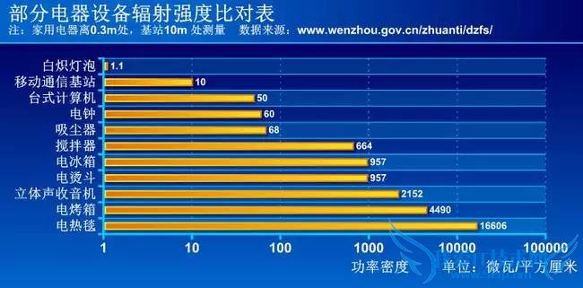 虽然数字仅供参考,但事实上确实是这样:电吹风、电磁炉等小家电飚出几百微瓦/平方厘米的辐射简直是轻轻松松的事,而电视机等也有也可以达到二三十微瓦/平方厘米。相比之下基站简直就是个乖宝宝好吗!