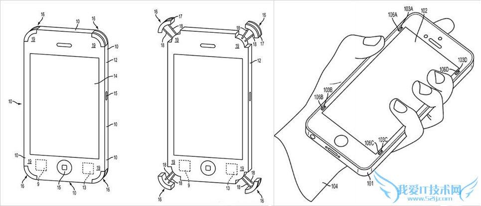 iPhone 被当成“艺术品”其实是一种讽刺的说法,因为它相对脆弱,多年来苹果也从未考虑改善。不过在iPhone 7 上或许有很大的改善,两个专利说明一切。第一个是在10 月底公布的有关“激活屏幕保护电子设备”的专利,该专利描述称在iPhone 屏幕的四周各设有一些类似缓冲器的伸缩式“软塑料”减震器,当手机的传感器包括摄像头和声效系统检测到你手滑的动作时,这些软塑料就会自动弹起,之后预防机制会确认你手动作的变化,收回缓冲的“软塑料”。