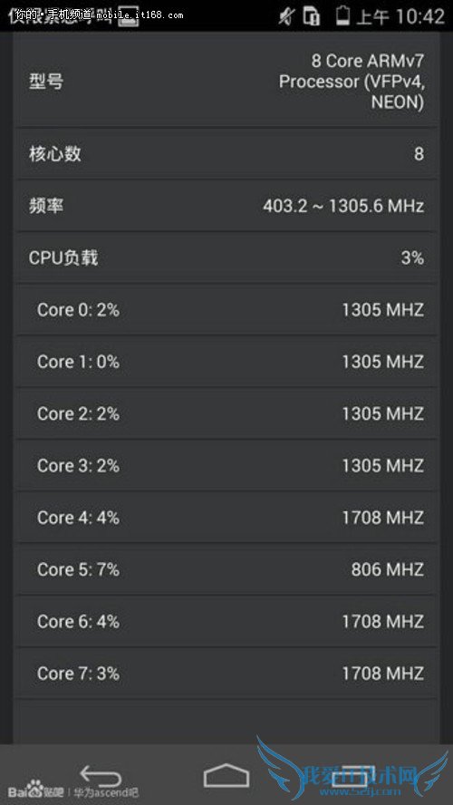 尽管此次曝光的系统截图并未显示具体的手机型号,但从所透露的一些硬件信息来看,基本上可以确定便是代号“木兰”的华为荣耀新机。与此前我们见到的配置一样,这款华为新机确认配有主要原因是该机不仅配有3GB内存,而且系统截图显示了具体的处理器核心数量以及包括A7架构下的主频速度等。此外,由于该机的GPU型号为Mali-T624,所以应该便是传闻中的麒麟920八核处理器。